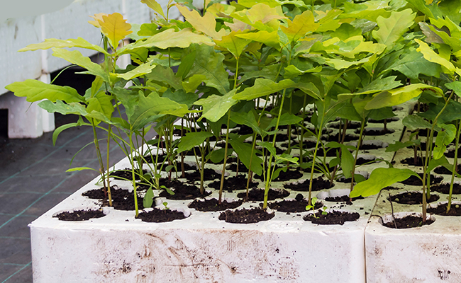 Dans cette pouponnière, 260 000 plants d’origines très diverses attendent d’aller repeupler nos forêts. La culture se fait en godets plutôt qu’en pleine terre pour un meilleur gain de temps et de productivité. À l’abri des intempéries et du gibier, les pousses grandissent plus vite.