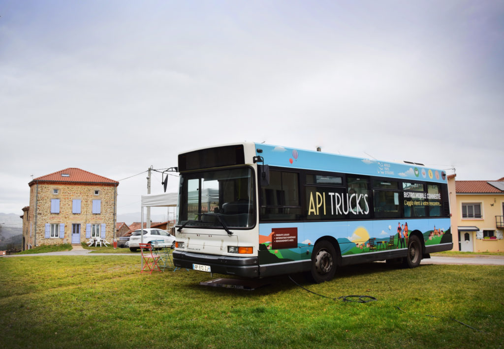 Sur une initative de l’Agglo Pays d’Issoire, ce bus réaménagé en bistrot ambulant dessert une vingtaine de communes, ramenant service et lien social aux habitants.